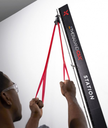 - La estación de pared TheraBand® CLX ™ está diseñada para entrenamiento de fuerza en la clínica, rango de movimiento y ejercicio de flexibilidad.
