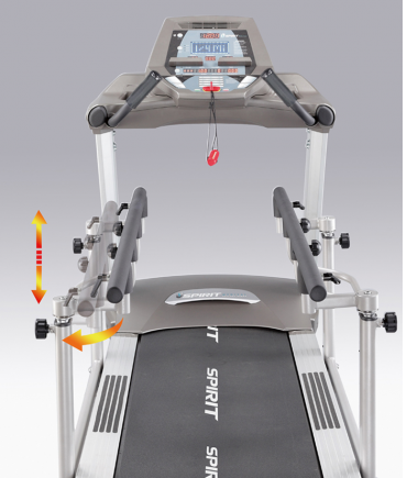 –  Las barras paralelas, la altura de la plataforma y la aceleración de la velocidad de la banda son ajustables en pequeños y precisos incrementos.